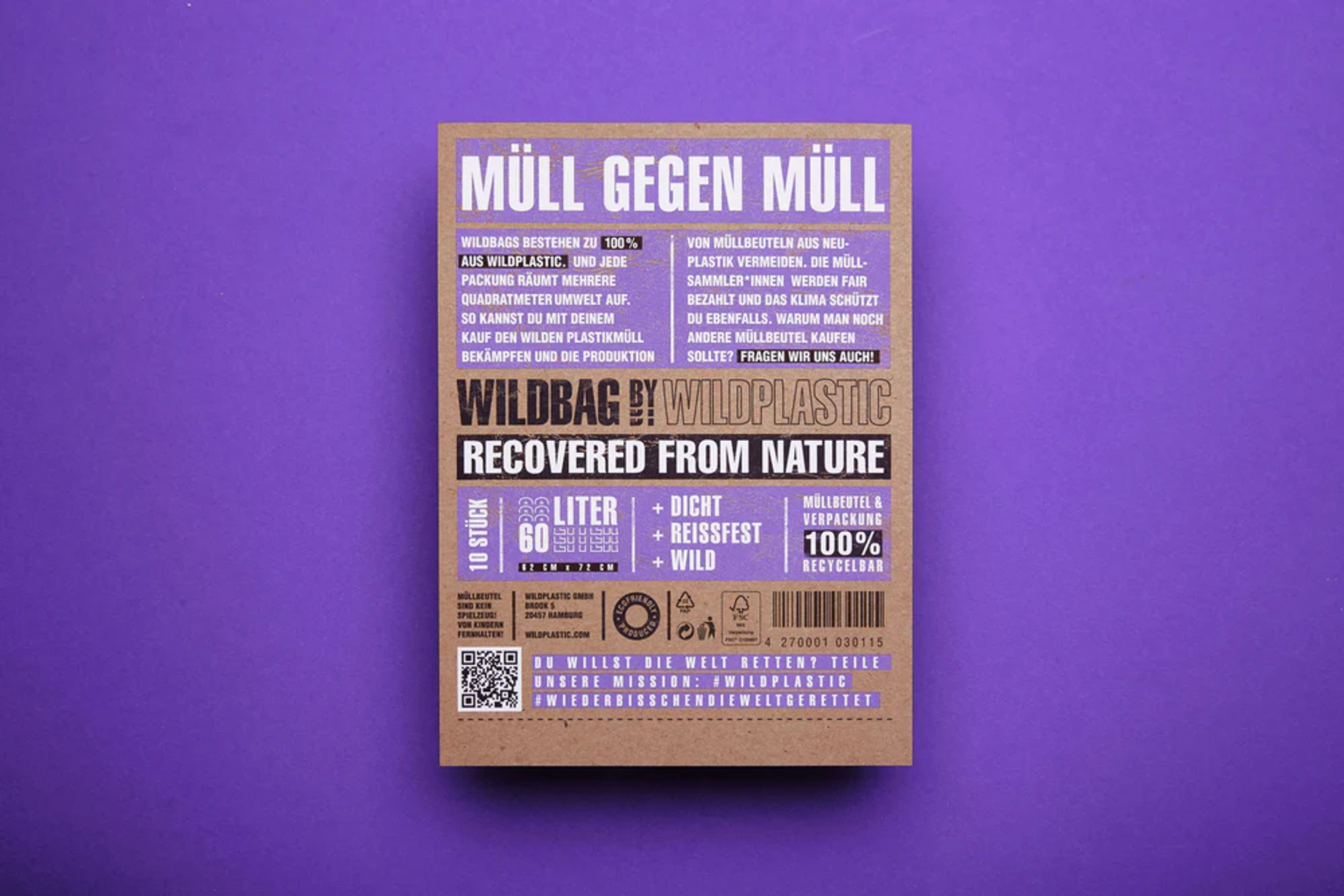 WILDPLASTIC Wildbag Garbage Bag 60 L