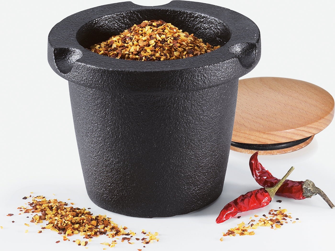 With the spice grater by ZASSENHAUS, you decide how finely you want to grind your spices. Made from durable cast iron and equipped with a beechwood storage compartment. Pepper, coriander and other spices stay fresh. Easy to use.